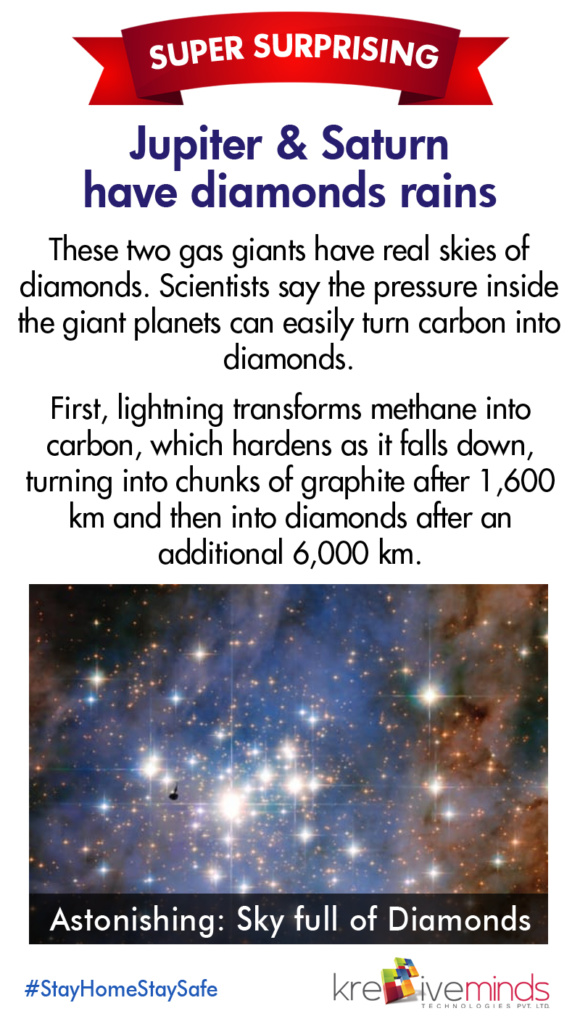 Super Surprising Jupiter & Saturn have diamonds rains Posted on May 8, 2020 5 (4) Was this post interesting? Click on a star to rate it! Submit Rating Average rating 5 / 5. Vote count: 4 No votes so far! Be the first to rate this post. Post Views: 1,716
