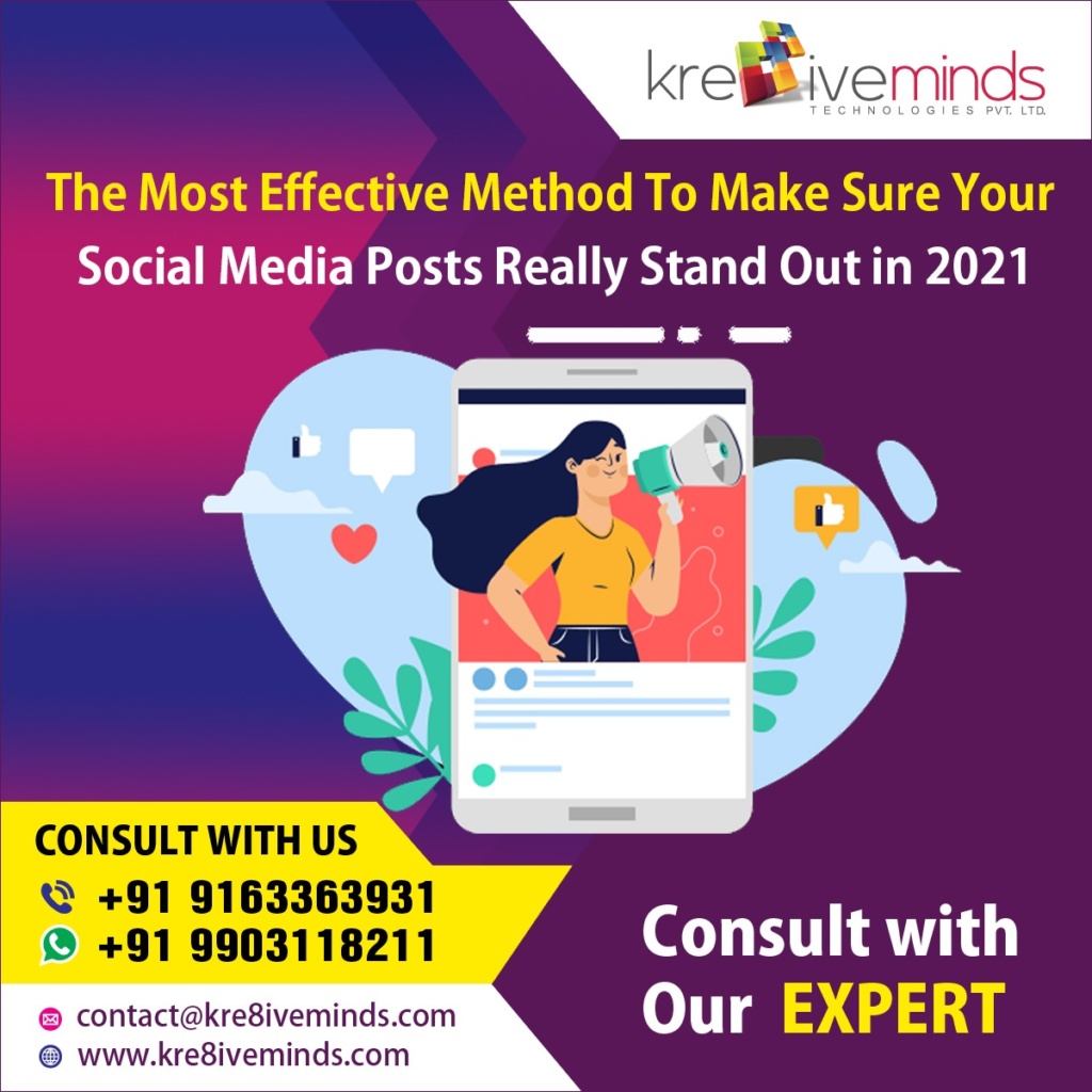 Creating social media posts that stand out is an art. There’s no simple trick to do that. It involves lots of creativity and brainstorming and creativity. Kre8iveminds, Digital Marketing Company in Kolkata can help you easily increase your social media engagement and gain numerous new followers in just few days. It is a Social media service providing company in Kolkata with great SEO-SMO experts. Do visit their website www.kre8iveminds.com